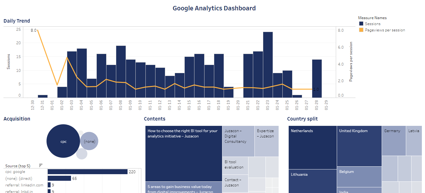 We frequently get asked if it is possible to connect BI tools to data sources such as Google Analytics. As a result we have developed a simple tool that allows anyone to have a dashboard with some of the main website metrics connected to their Google Analytics account. While all things can also be found […]